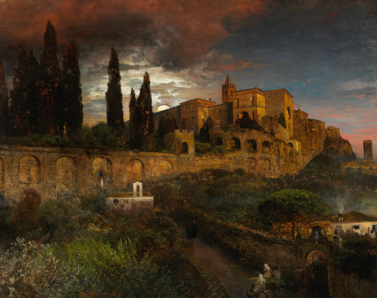 | O. Achenbach: Villa d'Este in Tivoli (1892) Öl auf Leinwand (119,5 x 150 cm) |